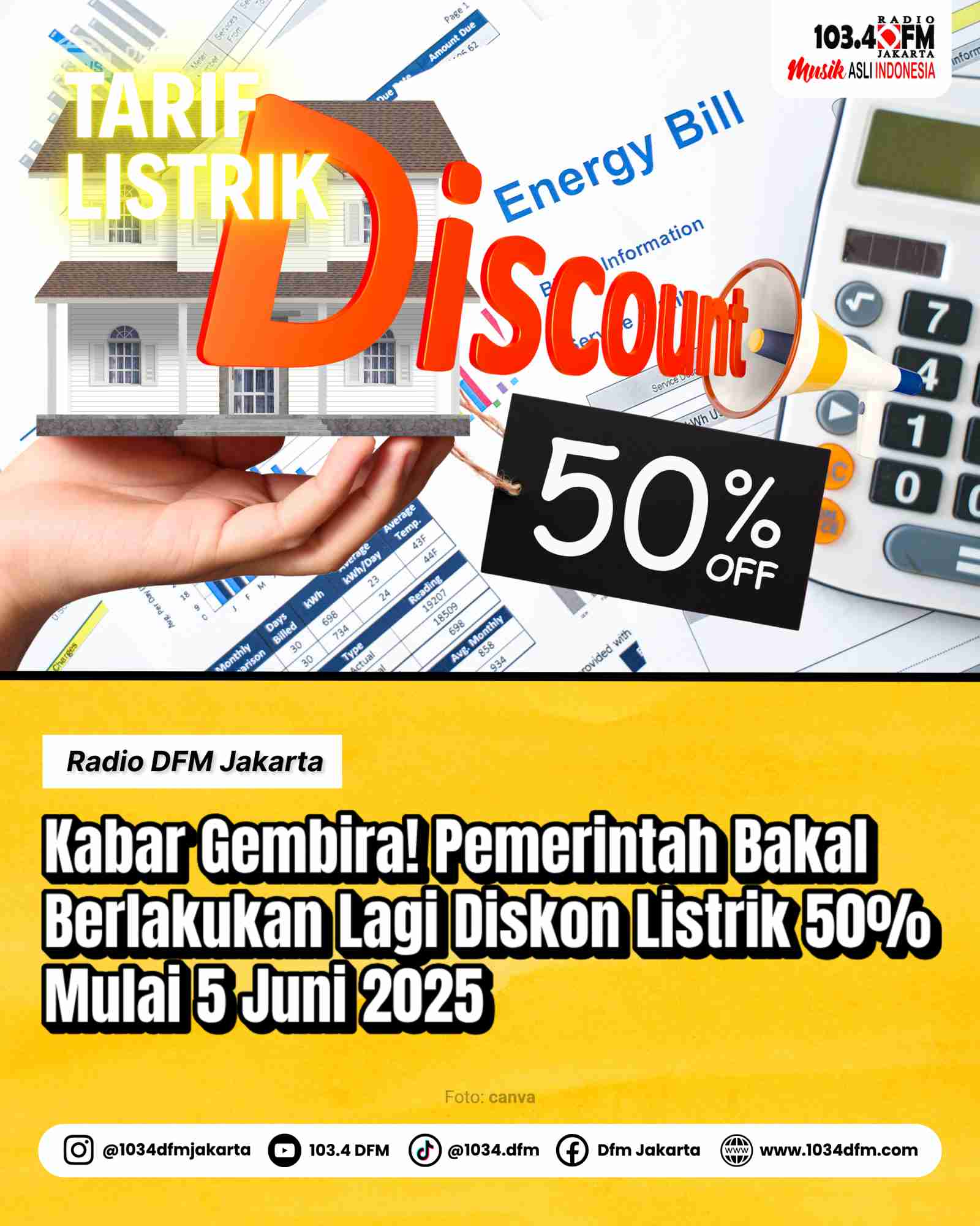 Kabar gembira nih DFM Mania! Pemerintah bakal kembali memberlakukan diskon tarif listrik sebesar 50 persen mulai 5 Juni 2025 lho. Menurut Menteri Koordinator Bidang Perekonomian Airlangga Hartarto, kemungkinan diskon li...